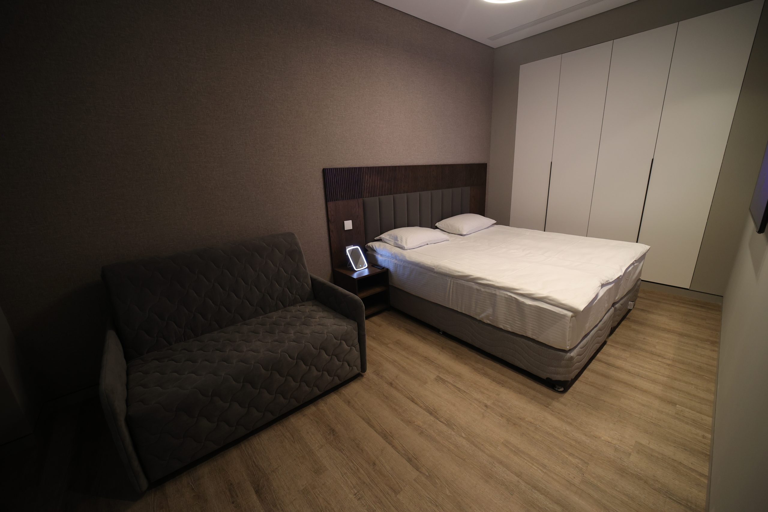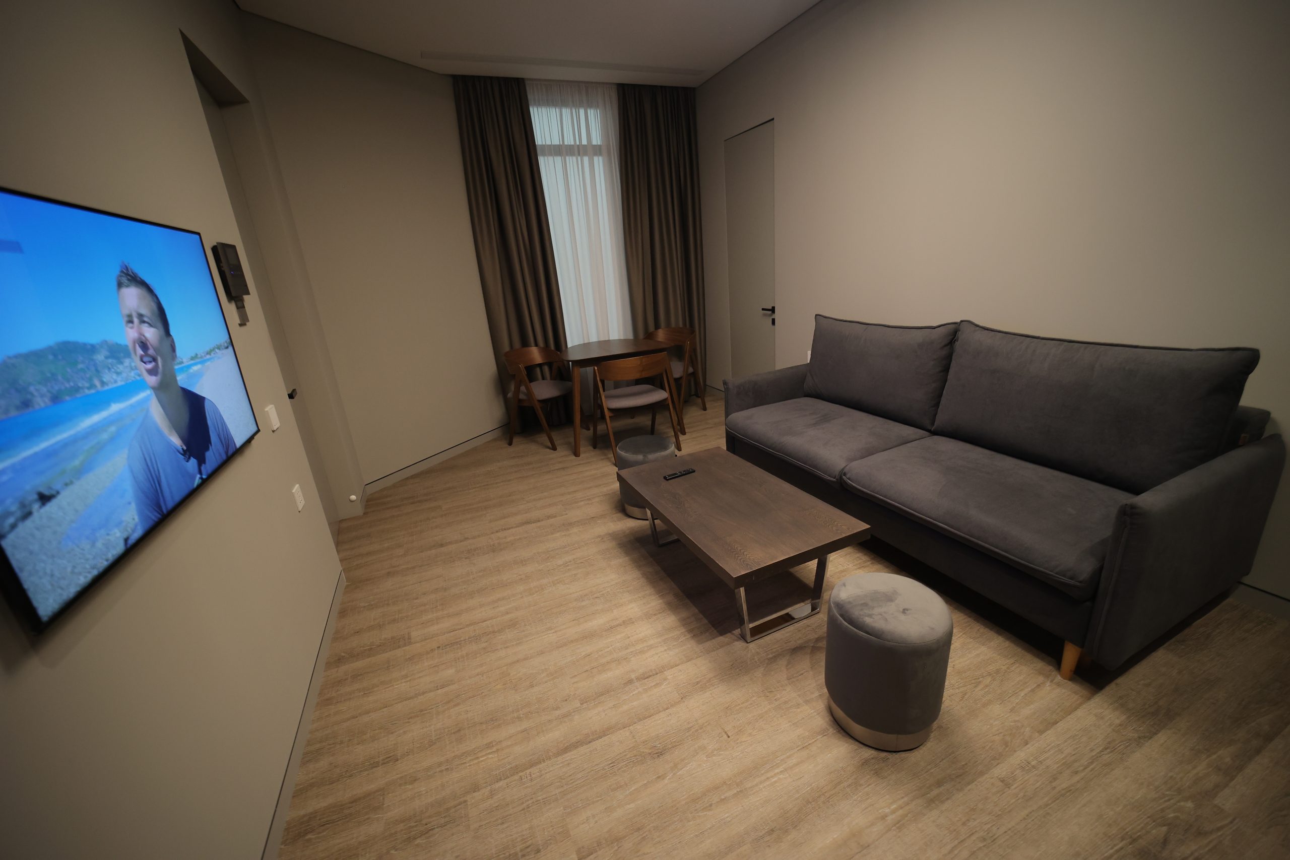 Двухкомнатная квартира расположена в самом центре Еревана, в 3 минутах ходьбы от площади Республики. Имеет гостиную, мини-кухню с большим холодильником, отдельную спальную, собственную ванную комнату, стиральную машину. Окна квартиры выходят во внутрь здания. Есть сверхмощная вентиляция с круглосуточным принудительный поток свежего воздуха. Максимальное число гостей: 5. Площадь апартамента: 40m².