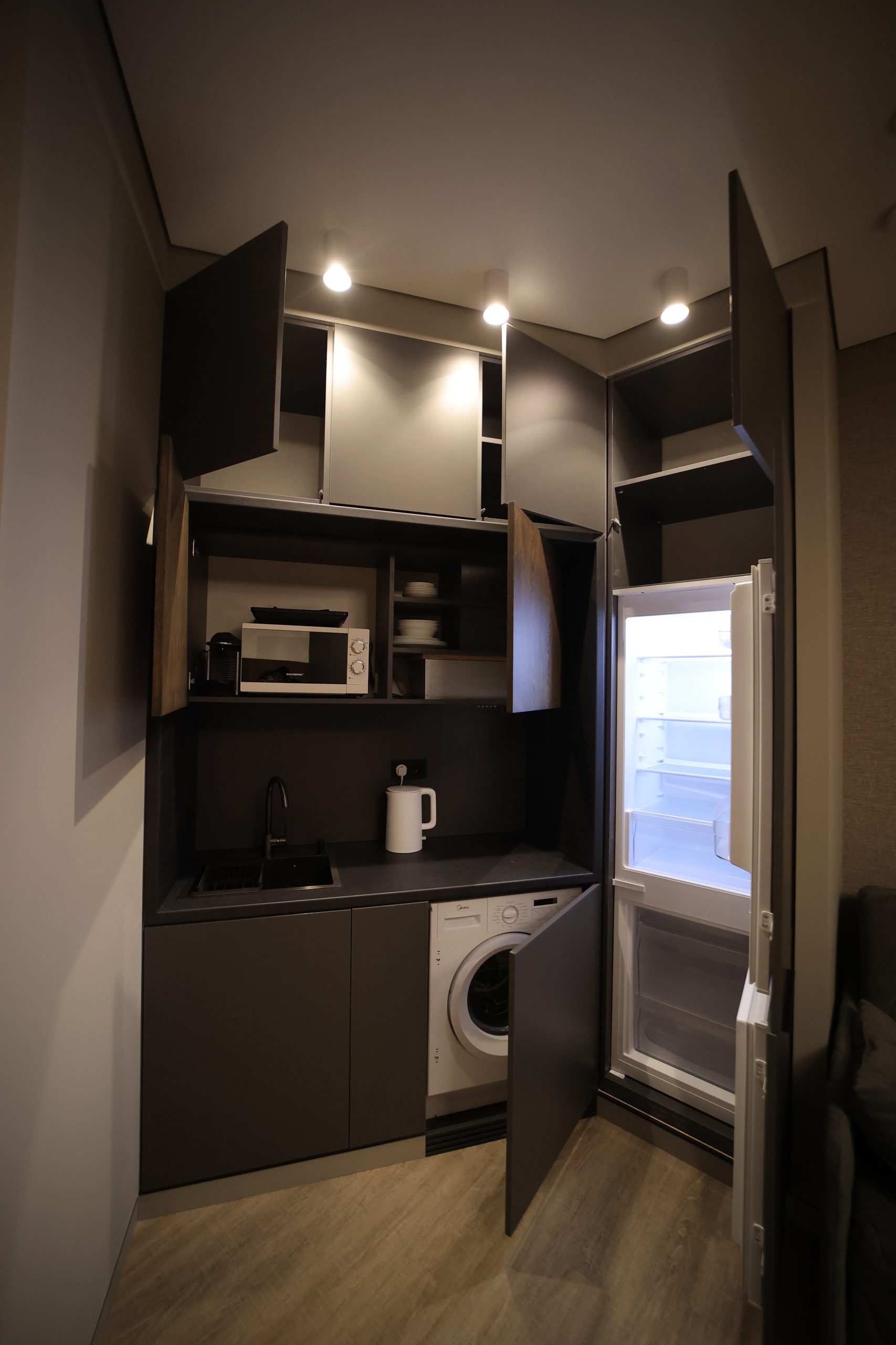 Однокомнатная квартира в центре Еревана, в 3 минутах ходьбы от площади Республики. Имеет мини-кухню с большим холодильником, собственную ванную комнату, стиральную машину. Максимальное количество гостей: 3. Площадь квартиры: 31 м².